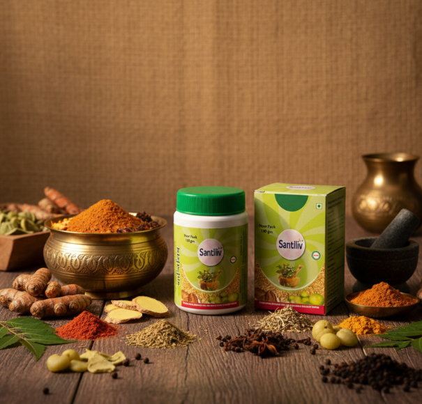 Santliv is a powerful Ayurvedic herbal formulation designed to support liver health, digestion, and overall stomach wellness. Made using time-tested Ayurvedic ingredients, Santliv helps detoxify the liver, improve appetite, and promote smooth digestive function naturally.