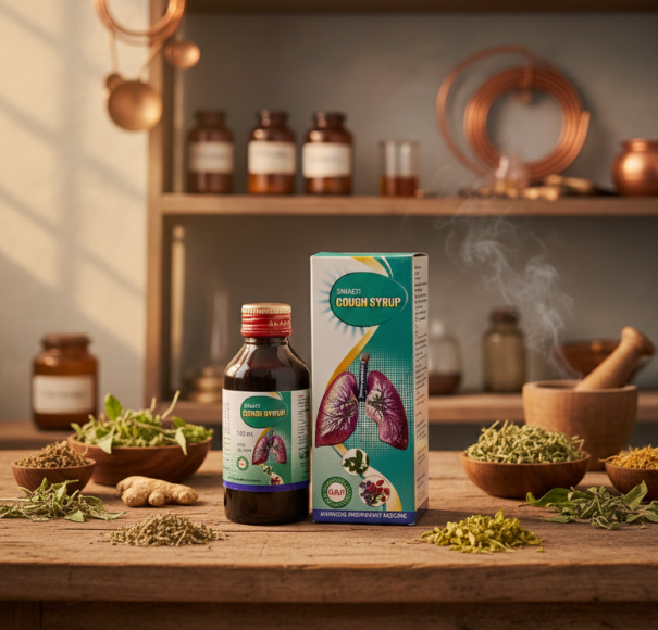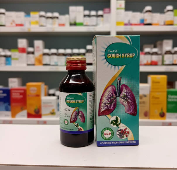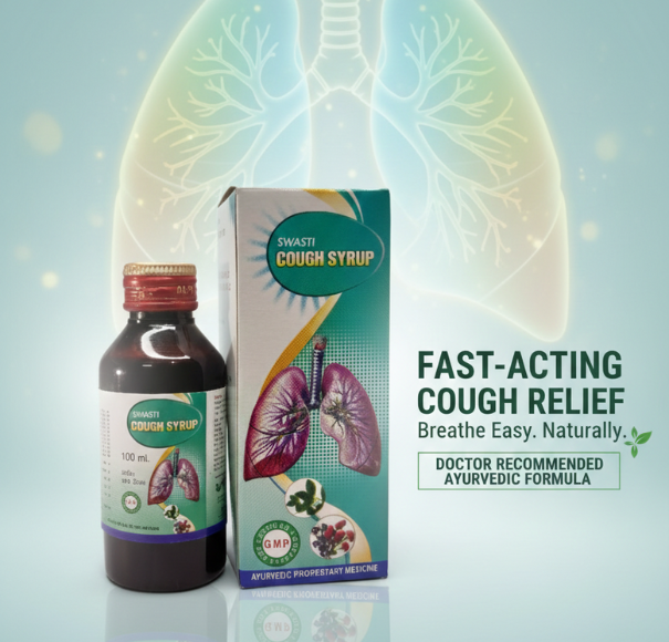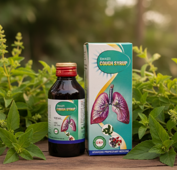Swasti Cough Syrup is a carefully formulated Ayurvedic proprietary medicine designed to provide effective relief from chronic, acute, and allergic cough, as well as various forms of respiratory distress. Made using time-tested Ayurvedic herbs, this syrup works gently yet effectively to soothe the throat, clear congestion, and support healthy lung function.